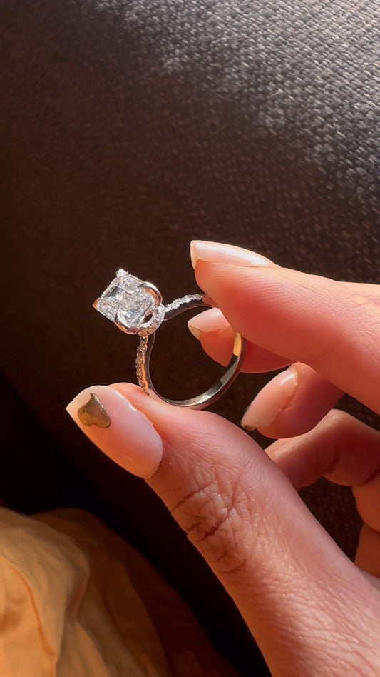 Devi Radiant Hidden Halo Moissanite Engagement Ring