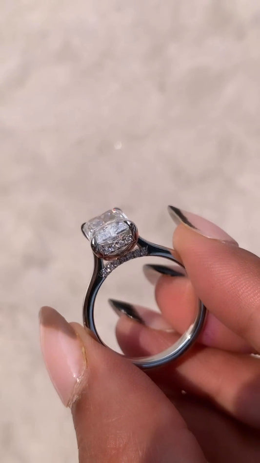 Edeline Cushion Hidden Halo Moissanite Engagement Ring