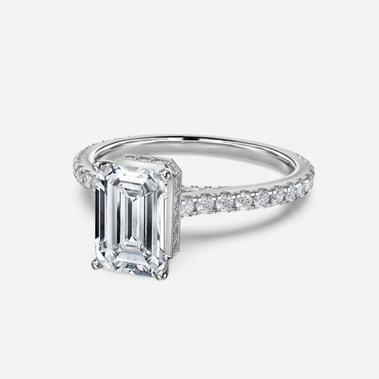 Edeline Emerald Hidden Halo Moissanite Engagement Ring