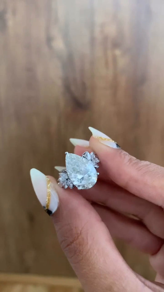 Isolde Pear Diamond Band Moissanite Engagement Ring