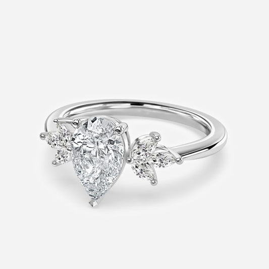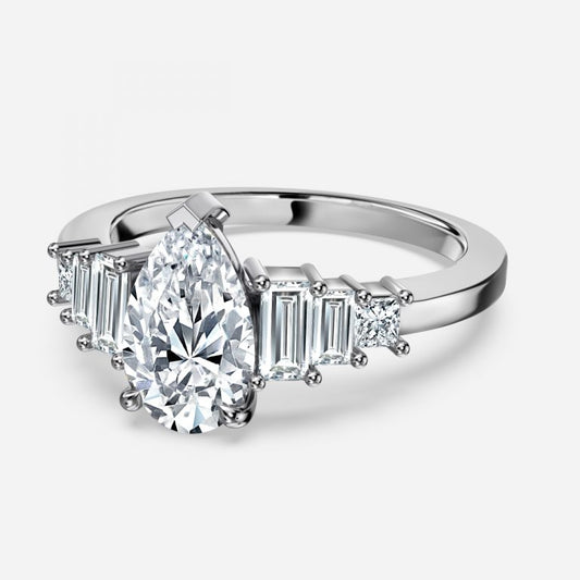 Eira Pear Diamond Band Moissanite Engagement Ring