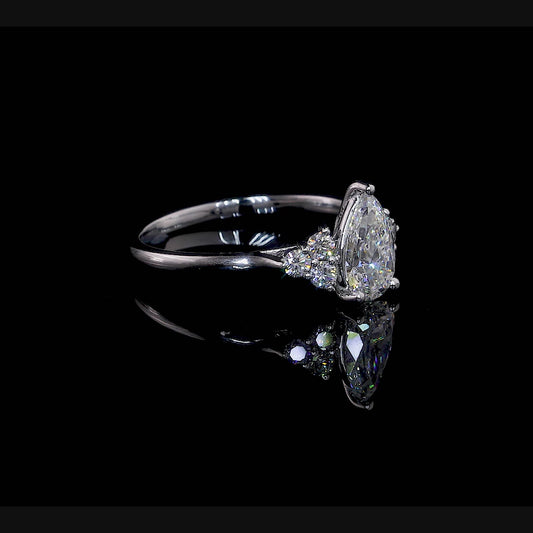 Clarity Pear Three Stone Moissanite Engagement Ring