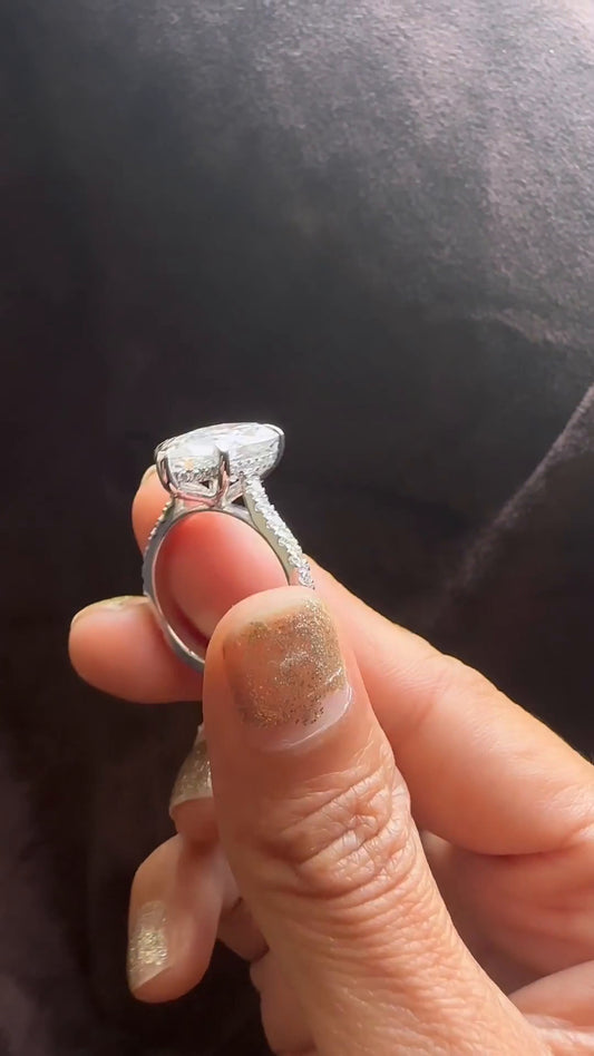 Wan Pear Diamond Band Moissanite Engagement Ring
