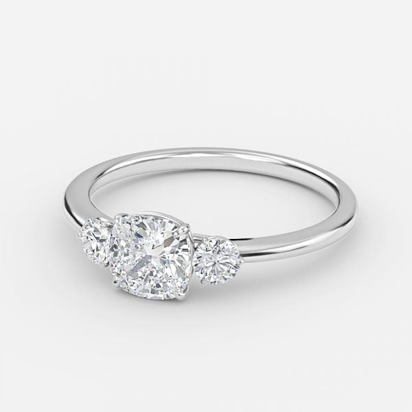 Kaori Cushion Three Stone Moissanite Engagement Ring